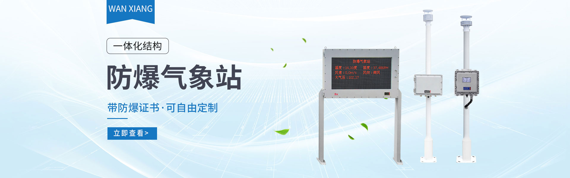山東萬象環(huán)境科技有限公司官網主要產品有防爆氣象站,校園氣象站,農業(yè)氣象站,負氧離子監(jiān)測站,超聲波氣象站,歡迎咨詢13276362033!